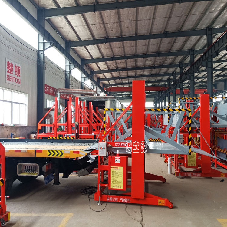 移动式装卸车升降平台是实现货物快速装卸的专用辅助设备,它的高度升降功能可以使手动叉车、地牛等搬运车辆,直接驶入货车内部进行货物的批量装卸,仅需单人作业,即可实现货物的快速装卸。装车平台的利用,为企业减少大量劳力,提高工作效率,获取更大经济效益。