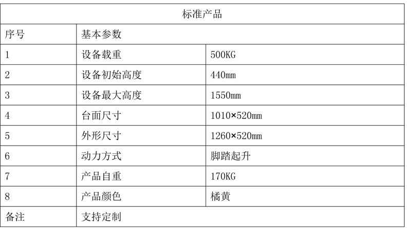 3. 基本条件:起升动力:脚踏 。环境温度:-15°C-50°C