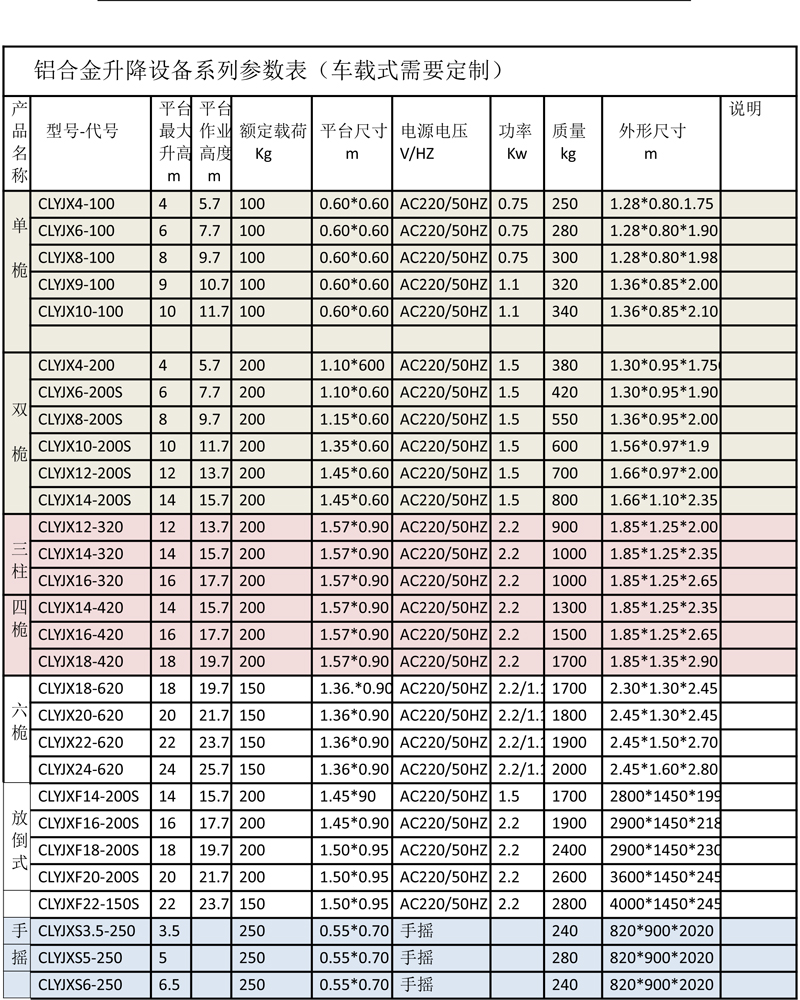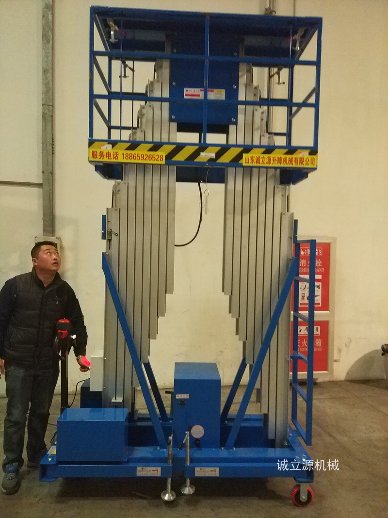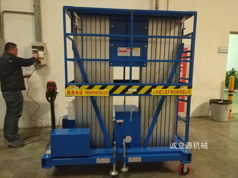 双桅柱豪华铝合金式升降平台:全新设计的新一代产品,整体采用高强度铝型材精制而成。由于型材强度高,使升降台的偏转与摆动极小。采用双桅柱式结构,载重量大,平台面积大,稳定性极好,运转灵活,推行方便。它轻盈的外观,能在极小的空间内发挥最高的举升能力。该升降机广泛用于厂房、宾馆、大厦、商场、车站、机场、体育场等。可用作电力线路、照明电器、高架管道等安装维护,高空清洁等单人工作的高空作业。