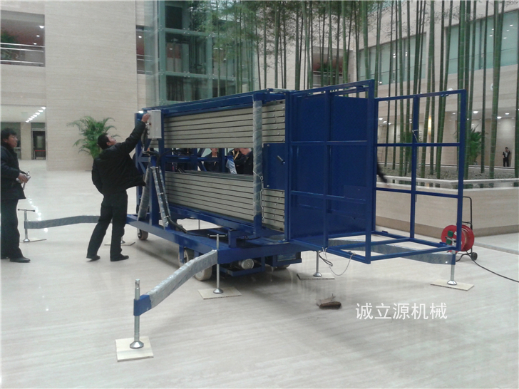 整体采用高强度的铝型材精制而成,动力经过液压泵站带动链条传动能够上下操作,是高空作业变得方便快捷!