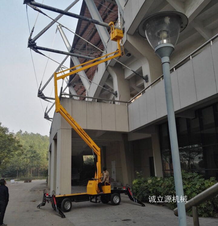 曲臂式升降机,又称曲臂式高空作业升降平台,简介:曲臂式高空作业升降平台是垂直式、剪叉式升降机的替代产品,该设备起升动力分别有:柴油机、蓄电瓶、交直流两用电源为动力。如柴油机为例:采用电启动发动机,液压支腿、液压升降、驾驶行走(也可牵引行走),平台 360°旋转作业。本产品具有操作简单,使用方便,作业面大,特别是能够悬空作业,跨越一定的障碍物或在一处升降,可进行大范围多点升降作业的特点,极大地提高了工作效率。该系列升降设备广泛用于市政、电力、路灯、公路、码头、广告、园林、小区物业、厂矿、车站、机场、企业车间等行业升降作业。
