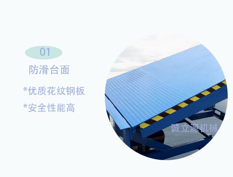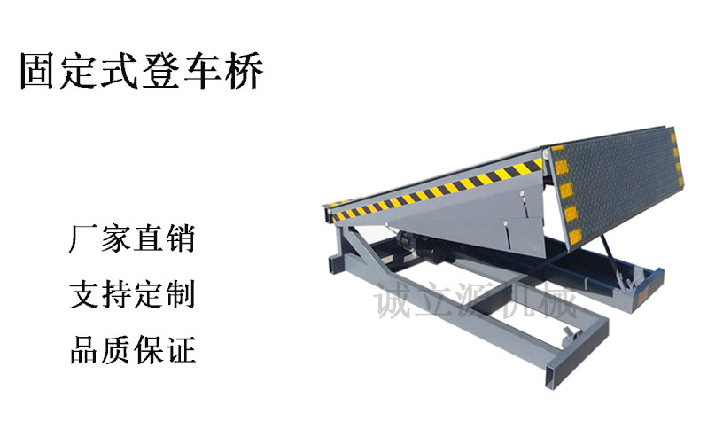 登车桥(装卸货升降平台)登车桥分为固定式、移动式两种,采用国产/进口液压系统,它的主要作用是在货台与运输车辆之间搭起一座桥,使叉车便利行驶,达到高效装卸货目的。该设备一端与货台等高,另一端搭在车厢后沿,并能根据不同的车型及装车过程中车厢的高低变化,自动调整高度。该产品可根据用户的不同需要,在外形尺寸、承受载荷等方面特殊设计。